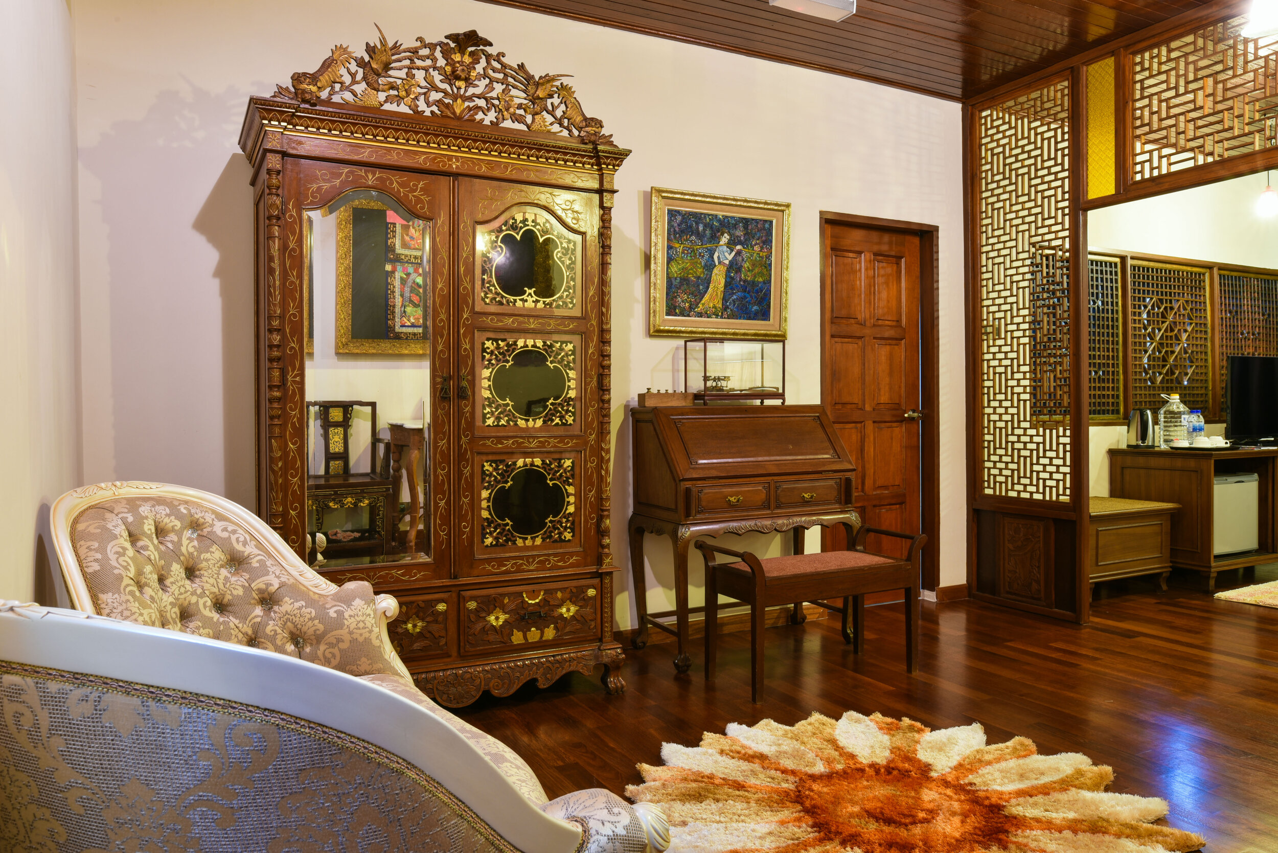 You will be treated to luxurious comfort in our spacious and fully furnished suite that overlooks the idyllic Melaka River. Decorated with exquisite taste, exclusive furnishings include a bathtub, antique wooden panels, and also an antique tile-covered balcony. Watch the world go by from your private balcony, and take a dip in the bathtub while sipping complimentary cider. With Peranakan interior design, soft lighting and great attention to detail, The Grand Boulevard Suite creates just the right atmosphere for your next romantic break. The maximum capacity of this room is 2 guests.